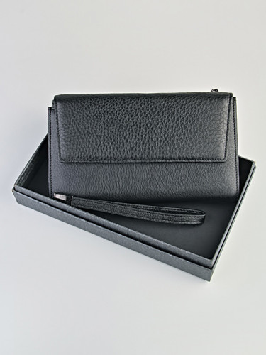 Клатч выполнен из мягкой натуральной кожи, закрывается на магните. Внутри имеется отделения для купюр любого достоинства, множество отсеков (14) для пластиковых карточек, визиток, фотографий. Есть 4 кармана на молнии, 1 карман на кнопке для мелочи. Клатч упакован в подарочную коробку.