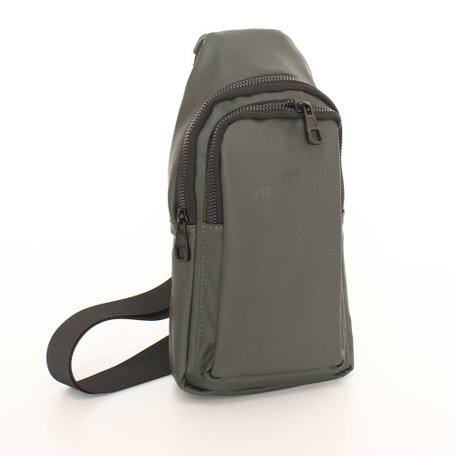 Мужская нагрудная сумка выполнена из непромокаемой ткани,имеет два основных отдела,внутри расположен небольшой потайной карман на молнии.