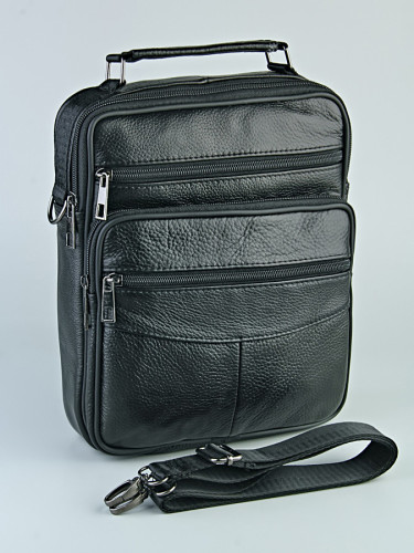 Сумка выполнена из натуральной кожи. Имеет одно основное отделение, три кармана на молнии на лицевой стороне и потайной кармашек внутри. С тыльной стороны еще два кармана на молнии. Носить сумку можно как в руке, благодаря ручке, расположенной сверху, так и через плечо. Практичная и удобная в использовании мужская барсетка, создана, чтобы носить с собой только самые необходимые вещи: паспорт, документы для авто, мобильный телефон, ключи и пр.
